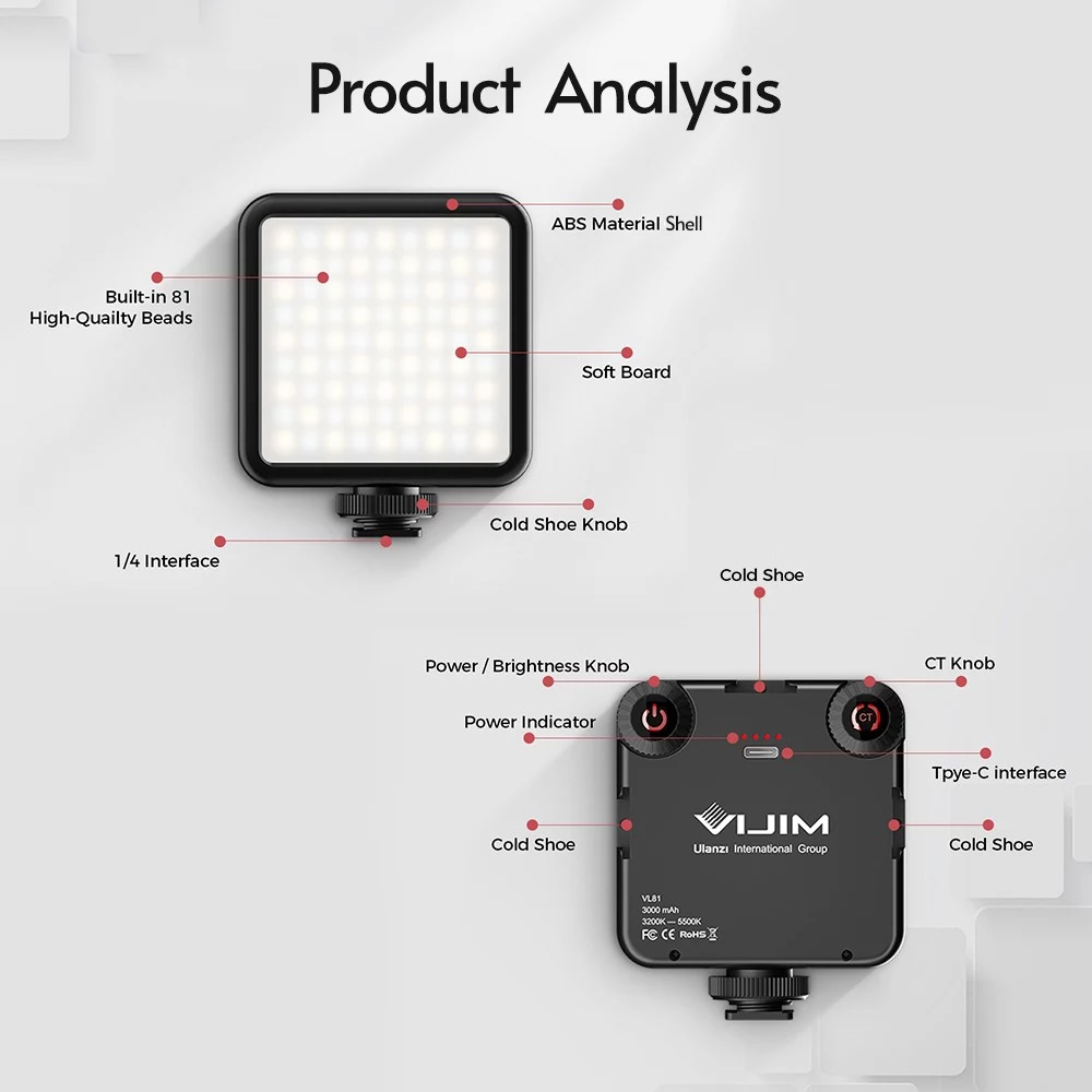 Tragbares Videolicht: Mini-Video-LED-Fülllicht, leicht und tragbar, weit verbreitet für Studiofotografie-Beleuchtung und Video-Vlog-Aufnahme.