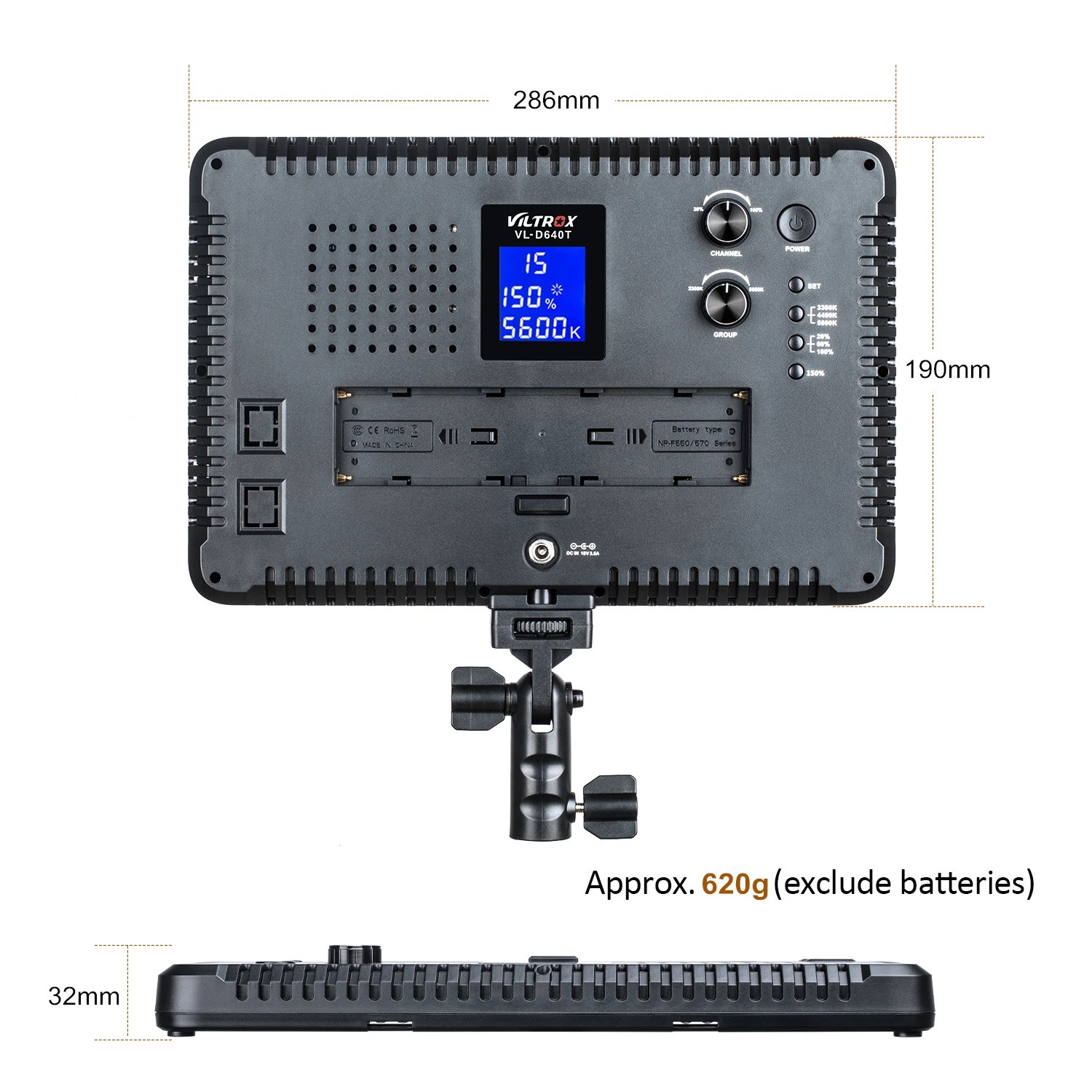 Dual power versorgung: DC netzteil/lithium-batterie: NP-F550/F570/F960/F970 serie (batterie nicht enthalten).