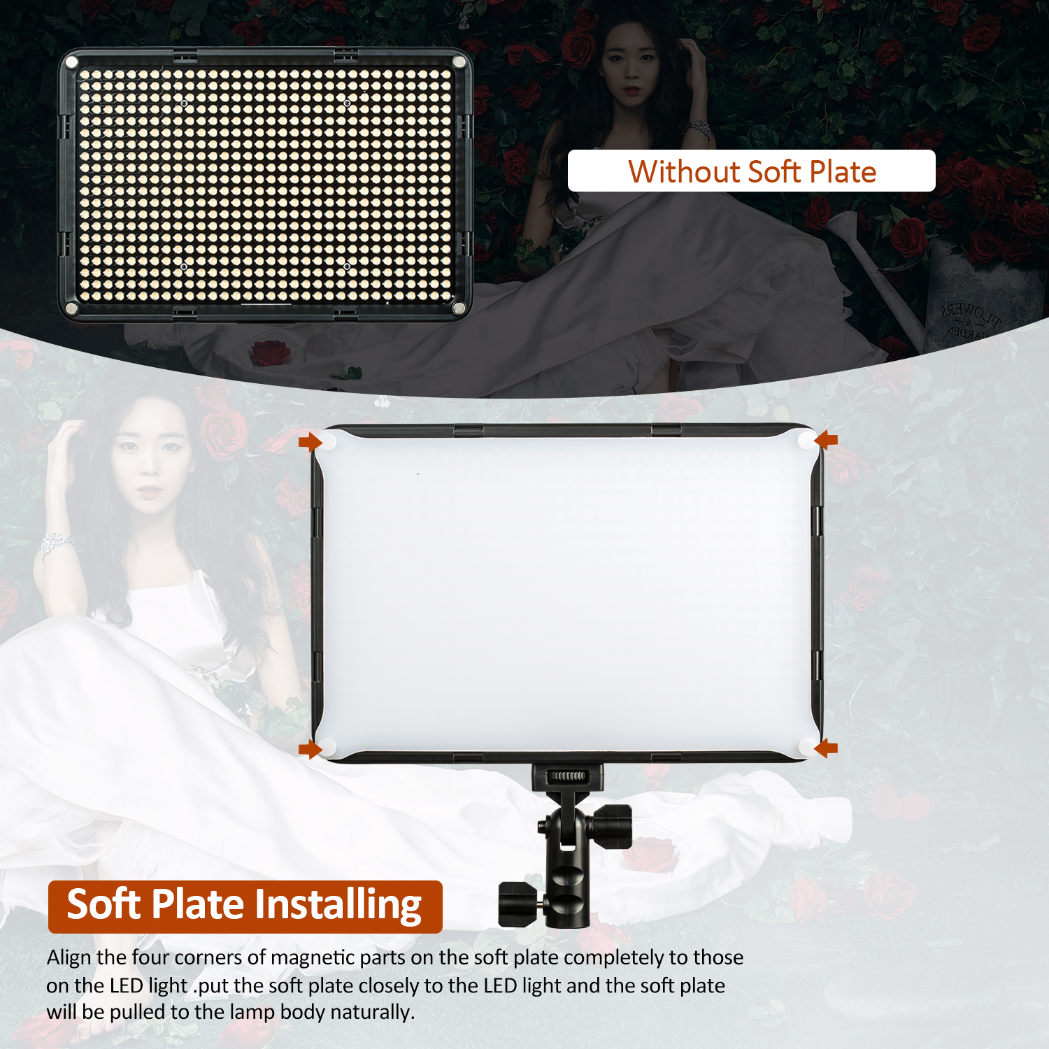 Mit halter diffusor, es kann ersetzen die riesige softbox, weiches licht wirkung ist besser, sehr hilfreich für produkt fotografie und video porträts.