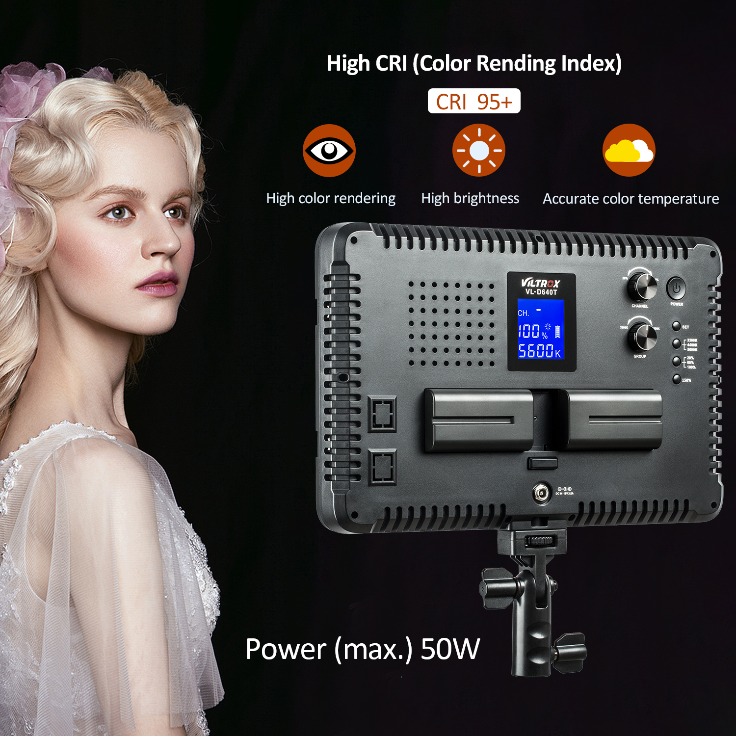 50W high power ausgang, CRI & TLCI 95 +: Max helligkeit: 4400LM.