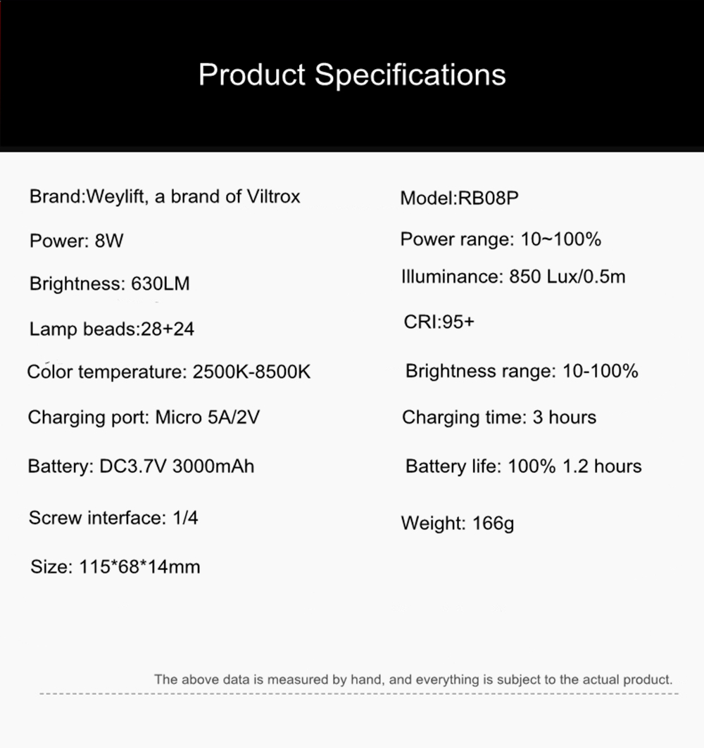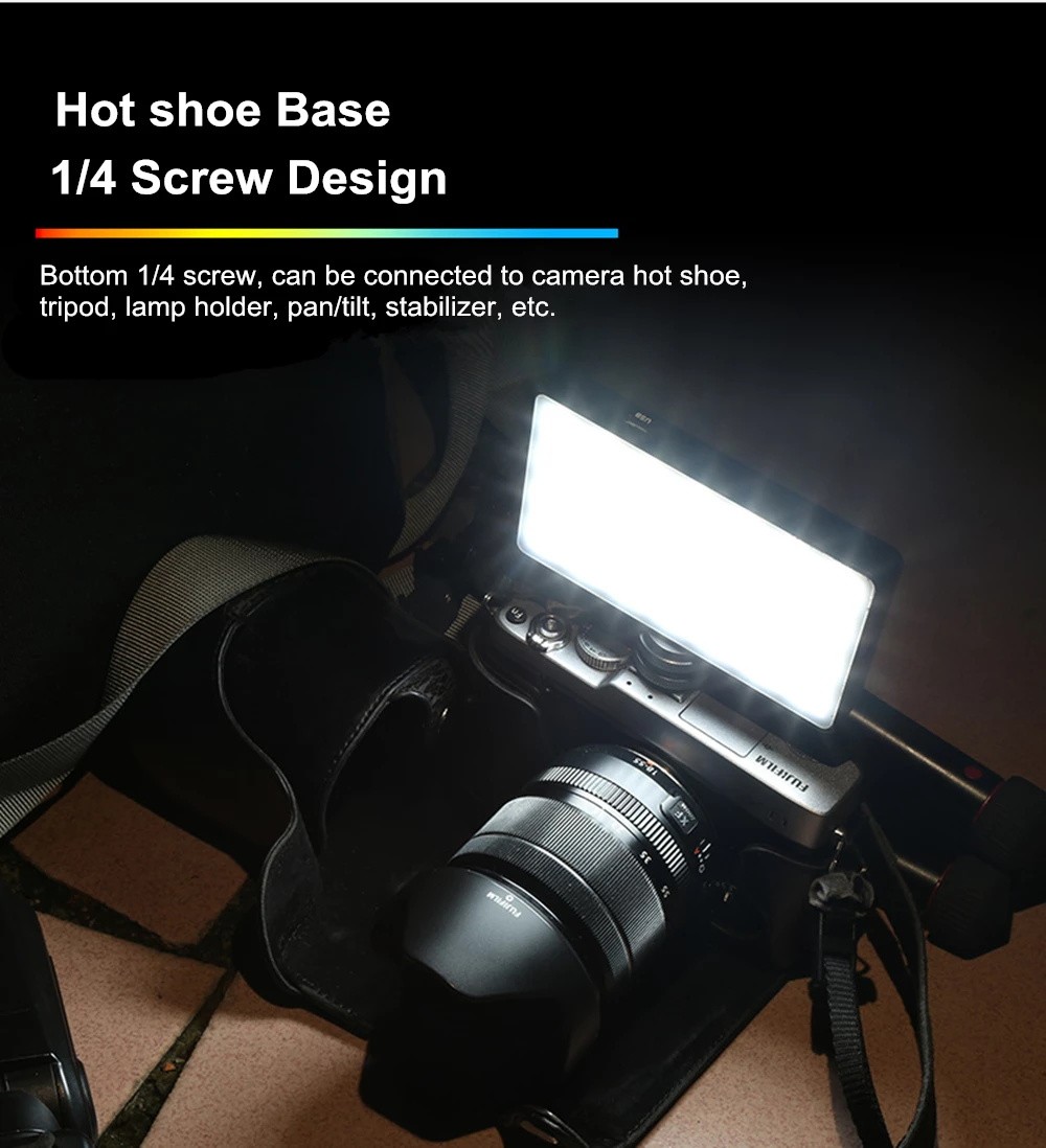 Langlebig und tragbar: Die Karosseriestruktur aus Aluminiumlegierung schützt das Licht sehr gut und ist leicht (Gewicht: ca. 166g). Klein, leicht zu tragen. Die Standard 1/4 Schraube ist für das Stativ und den Ständer geeignet, auch mit einer Kaltschuhhalterung für die Kameras oder DSLR usw.