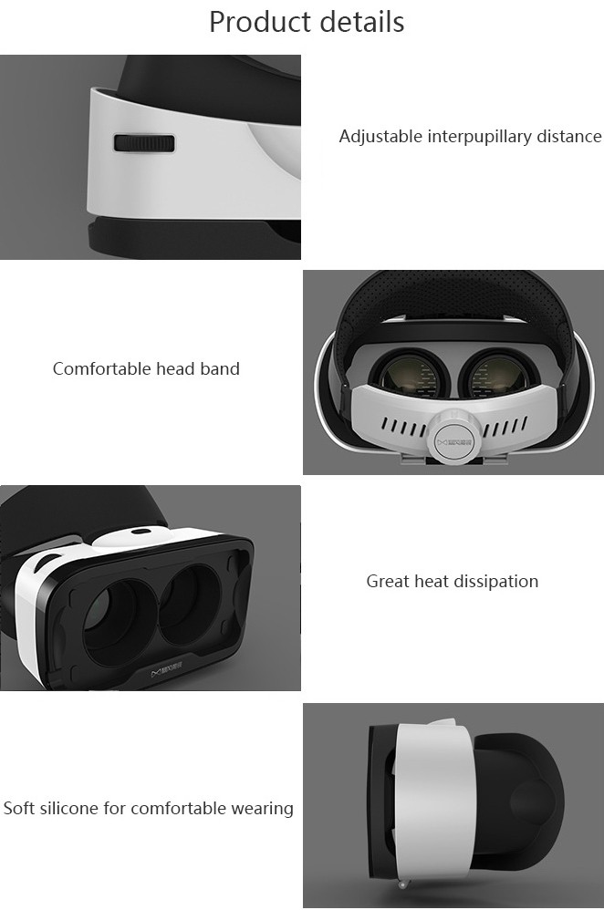 | General | Brand: Baofeng Model: Mojing 4 VR Glasses Type: VR Glasses Compatible with : Smartphones Material: Glass, ABS, Foam, PC Color: Assorted Colors Smartphone Compatibility: 4.7 - 6.0 inch |