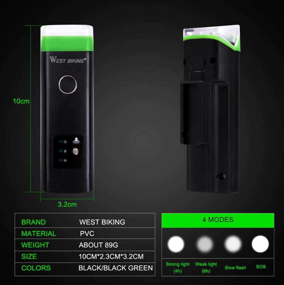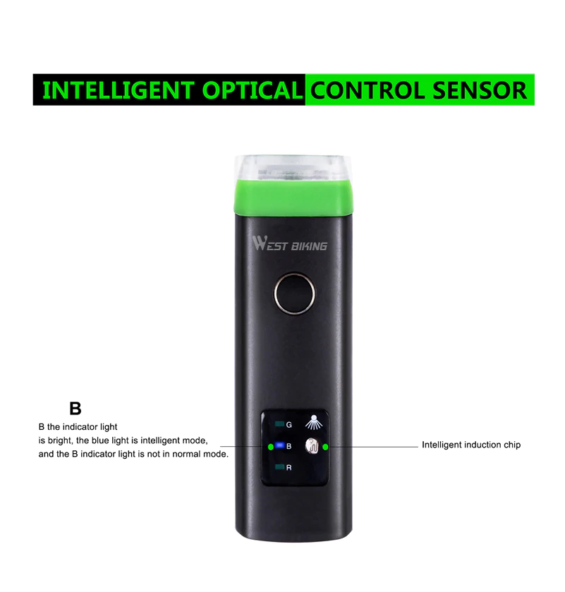 WEST BIKING Fahrradscheinwerfer Sensor USB Lade Fahrrad wasserdichte Taschenlampe
