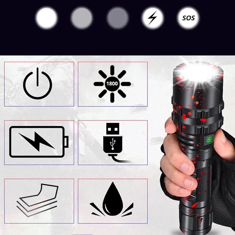 100% super hohe brandneue XHP50 USB wiederaufladbare LED Taschenlampe Taschenlampe.