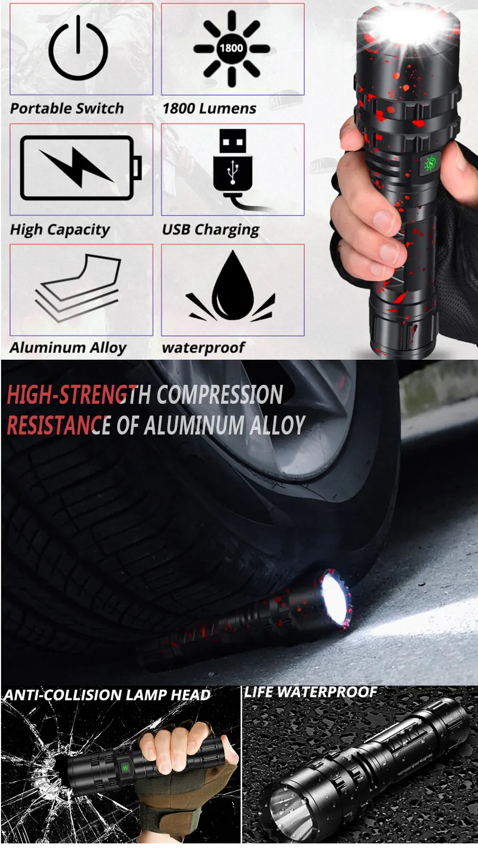 Dieser Artikel ist eine taktische LED-Taschenlampe aus Aluminiumlegierung.