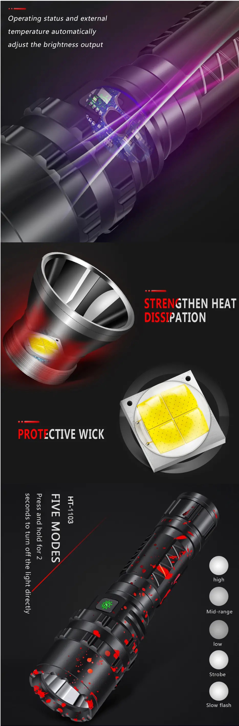 | 5Modi | Hoch / Mittel / Niedrig / Strobe / SOS |