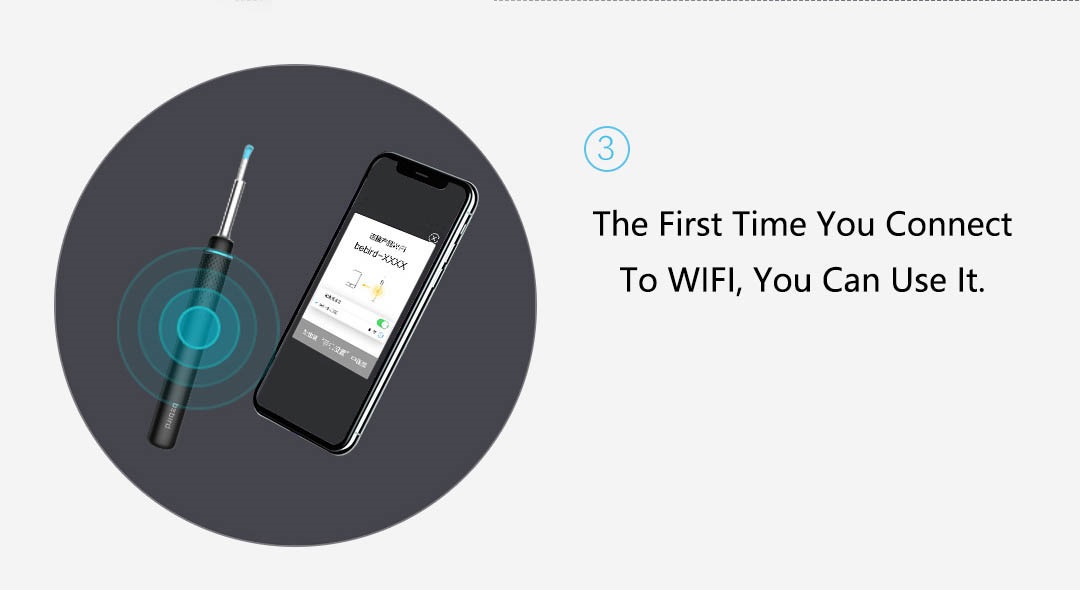 Laden Sie die Bebird App herunter und installieren Sie Ihr Gerät. Es kann einfach sein, WiFi mit Android Smartphone / Tablet und IOS iPhone / iPad zu verbinden. Weitere Funktionen: Sie können nicht nur den Gehörgang überprüfen und Ohrenschmalz reinigen, Ihrem Familienmitglied bei der Ohruntersuchung helfen, sondern auch das Ohr Ihres Hundes und Ihrer Katze mit der Alkoholsterilisation überprüfen. Es eignet sich auch zur Untersuchung von Haut und Zähnen.