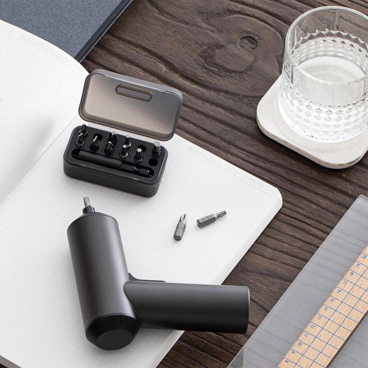 Voll aufgeladene Mijia Power Candeal mit 180 Stück Schrauben. Geteiltes Batteriegehäuse aus schwer entflammbarem Material, sicher und wärmeisolierend.