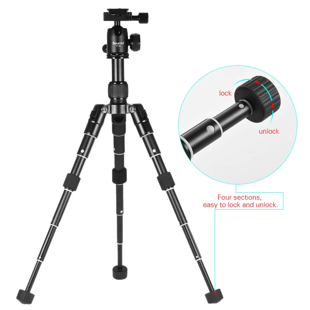 Kompakt und edles Design mit gefalteten Größe nur 18cm, bequem für Sie zu tragen. Mit Wasserwaage, entwerfen drei Einstellräder Effekt Kugelkopf Dämpfung, zu realisieren, jede Winkelaufnahmen, präzise und effizient, mehr Möglichkeiten für Ihre Makroaufnahme zur Verfügung stellt.
