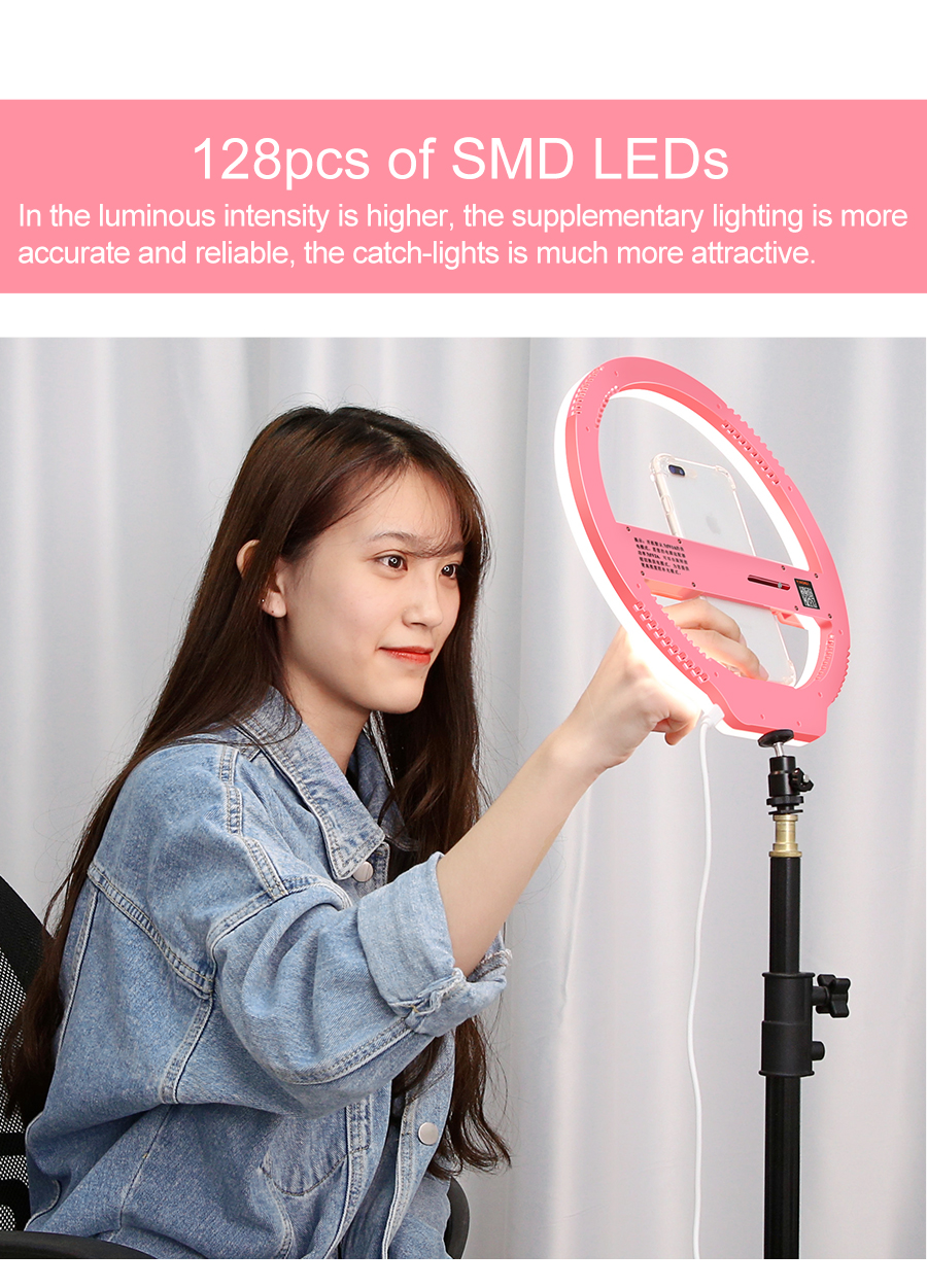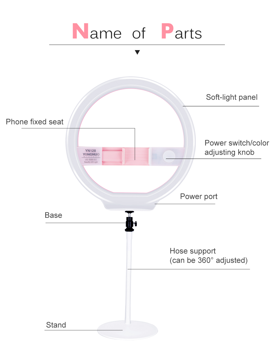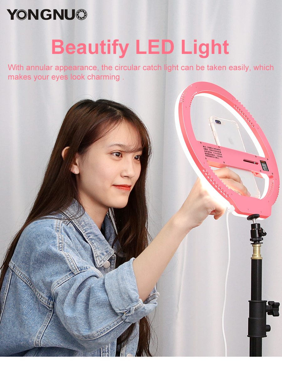 YN128 ist ein neues tragbares LED-Licht zum Verschönern, das speziell für Live-Videos und Selfies entwickelt wurde. YN128 nimmt ein ringförmiges Erscheinungsbild an. Da positives Einfülllicht weicher und viel gleichmäßiger ist, kann eine perfekte Aufnahme von Fanglichtern erzielt werden. Der YN128 verfügt über drei Lademethoden, um unterschiedliche Anforderungen in verschiedenen Szenarien zu erfüllen: Telefonladegerät, tragbare Power Bank und Computer-USB-Anschluss. Mit einer Schlauchhalterung, die in jedem Winkel eingestellt werden kann, können Sie je nach praktischem Bedarf Fotos oder Live-Videos aufnehmen.