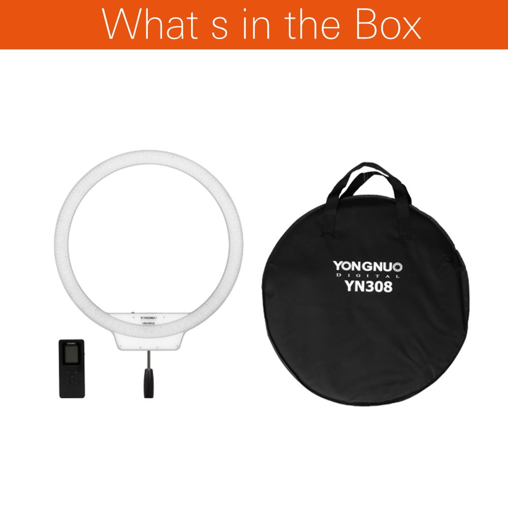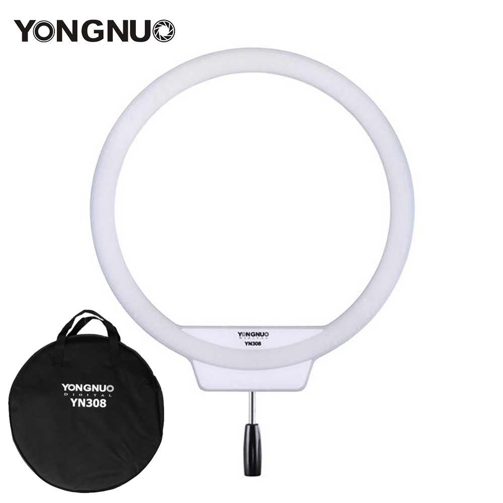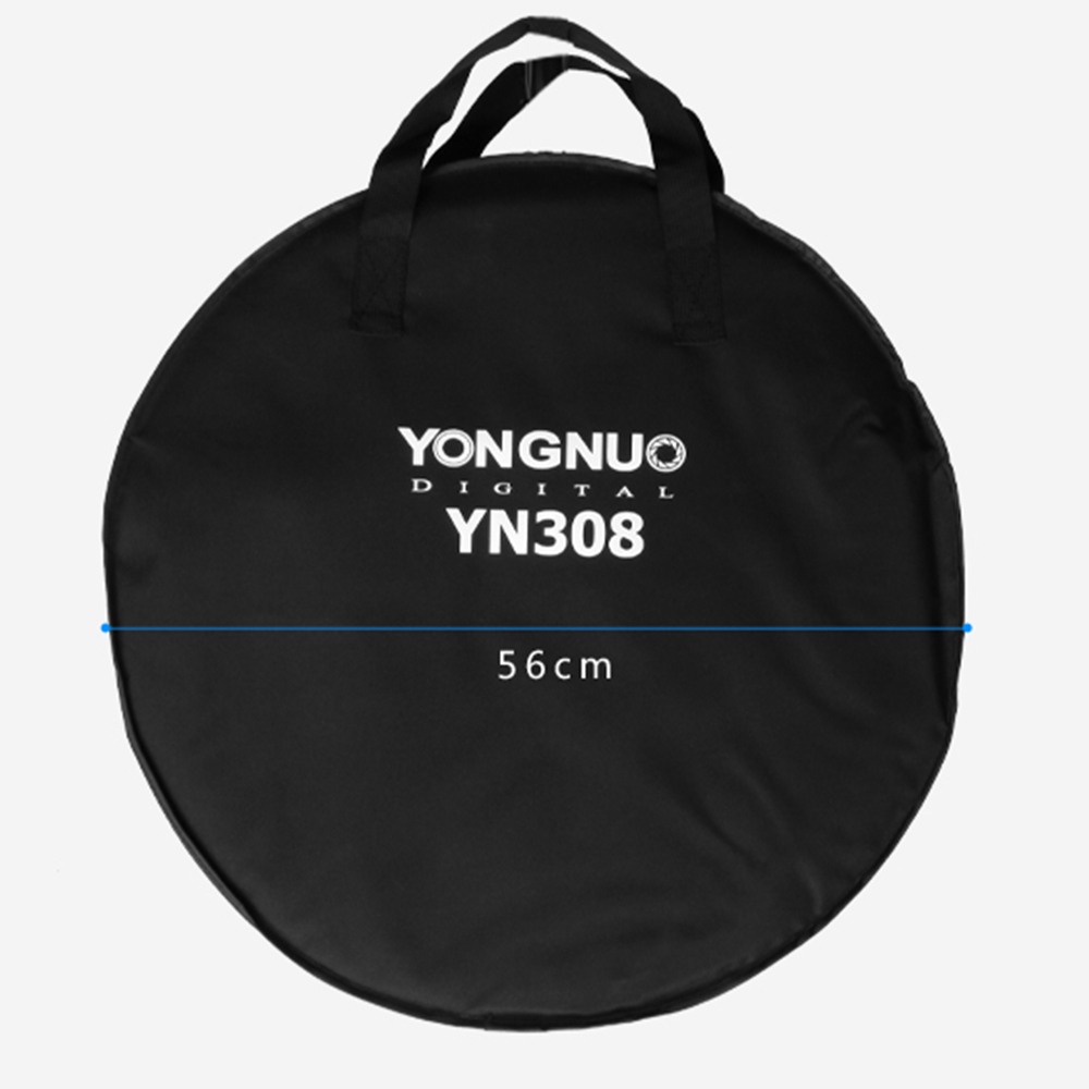Der YN308 ist mit einem speziellen Griff für LED-Ringvideolicht ausgestattet. Er ist fest und praktisch. Mit einer Aufbewahrungstasche zum bequemen Aufbewahren und Tragen des Videolichts für Außenaufnahmen.