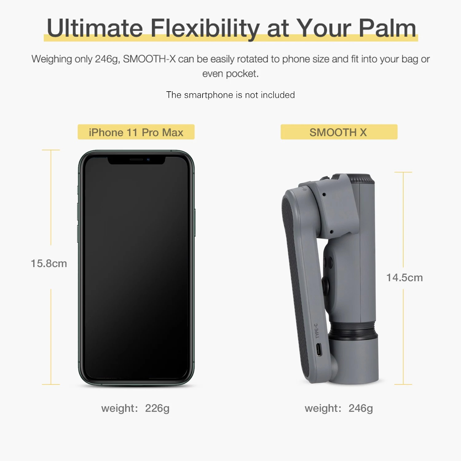 Ultimative Flexibilität auf Ihrer Handfläche: SMOOTH-X ist faltbar und wiegt nur 246 g. Es kann einfach auf Telefongröße gedreht werden und passt in Ihre Tasche oder sogar in Ihre Tasche.